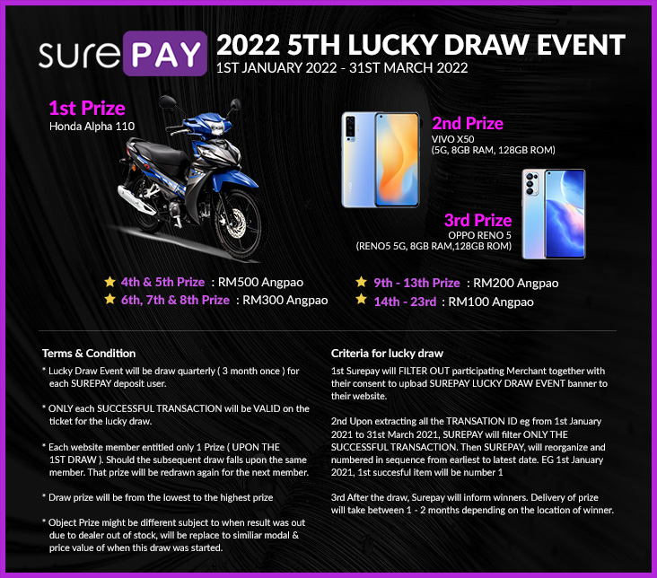 Eg. Deposit RM100 Bonus = RM100 x 50% = RM50 Turnover = (RM100 + RM50) x 5 = RM750